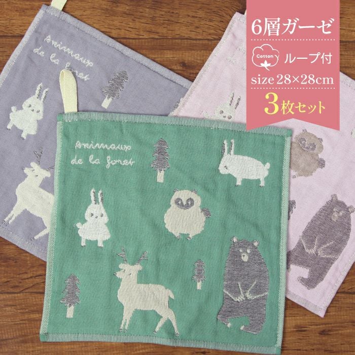 保育園 幼稚園で必要なループタオル3枚組です。ナチュラルなデザインでほっこりかわいい北欧風。6層構造の生地でしっかり吸水ガーゼ素材。サイズは正方形28×28cm