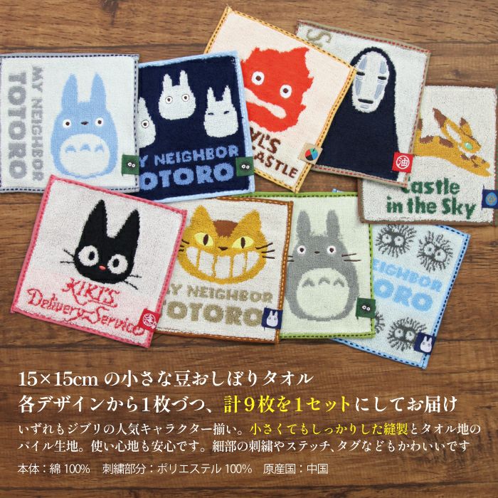 スタジオジブリの可愛い豆タオルが各柄1枚づつセットになった9枚セットです。 サイズ 約15×15cm