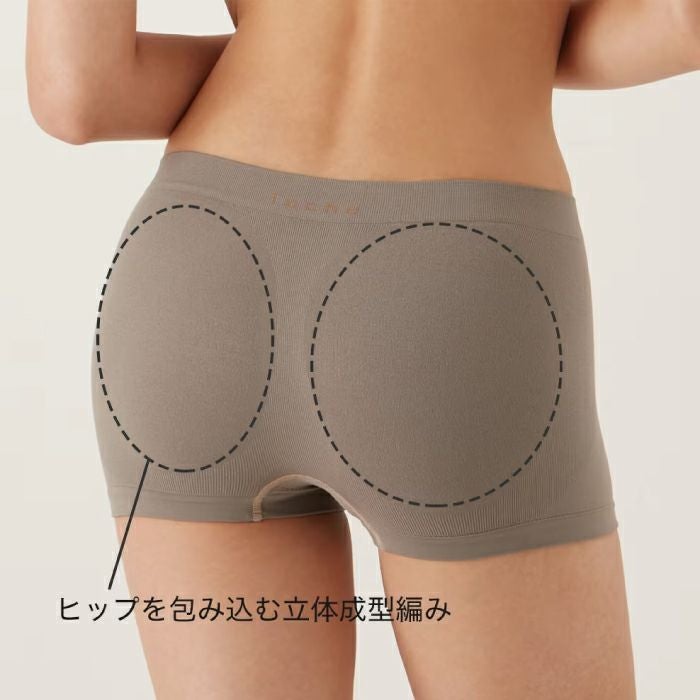 Tuche3D立体成型のボクサーパンツ ・3D立体設計で、ヒップをまあるく包み、後ろ姿キレイなシルエット。