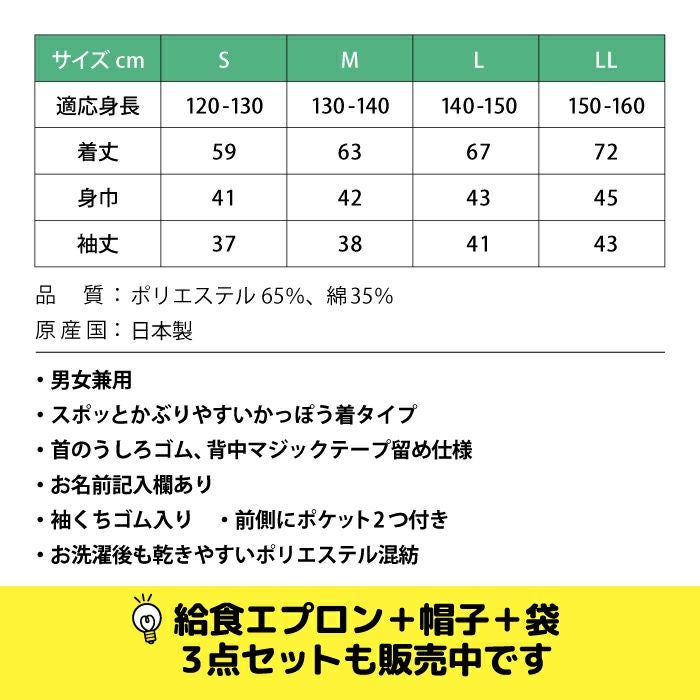 【公式限定10%OFF】 給食着 給食エプロン