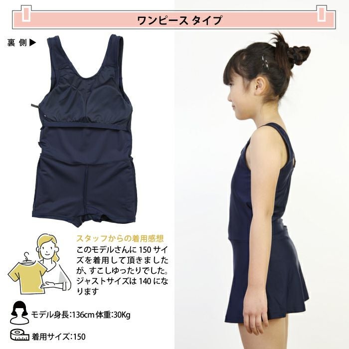 胸の部分は120~130CMはあて布付き、140~170CMは着脱可能な胸パッド付きで安心。