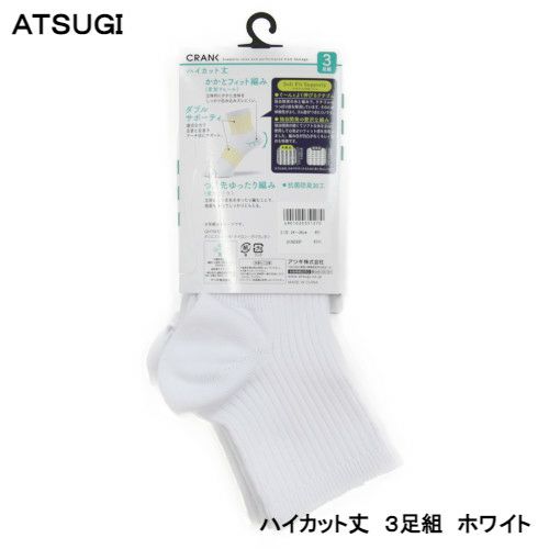 【50%OFF】 ATUGI CRANK 同色3足組 綿混 ハイカット丈ソックス