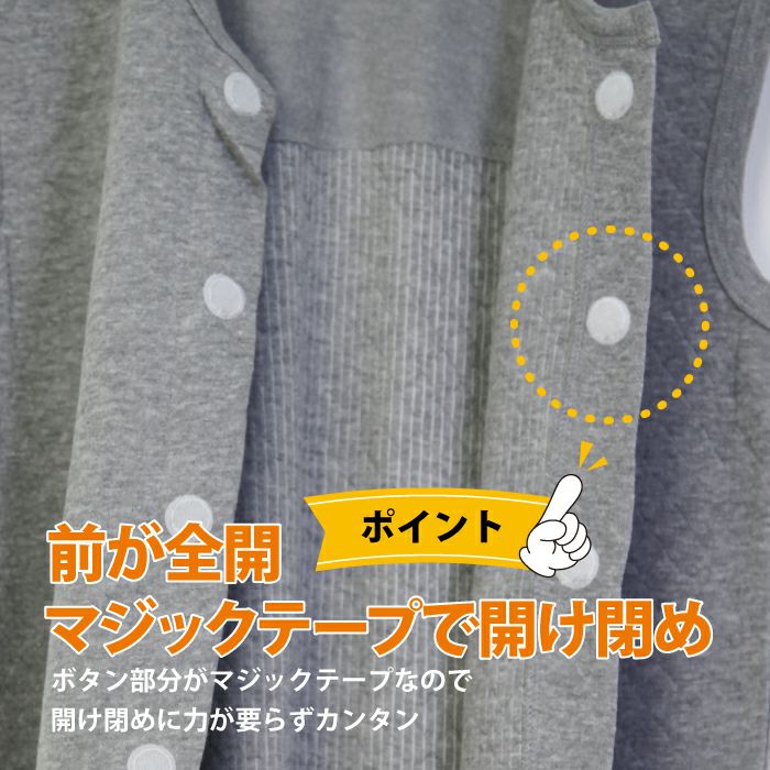 ・着脱が簡単なマジックテープ仕様の前開きタイプなので、介護や入院用のインナーベストとしてもオススメです。