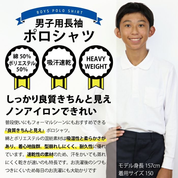 男の子用吸汗速乾長袖ポロシャツ×2枚セット