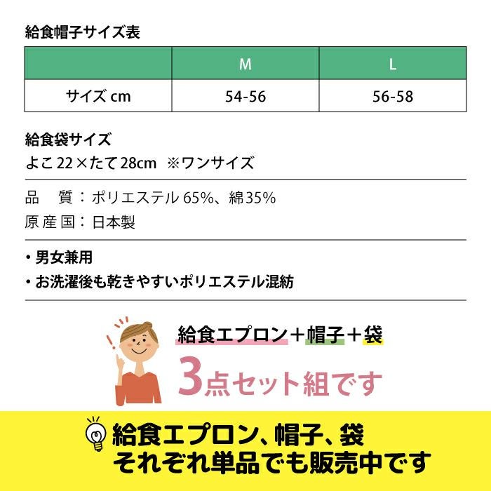 他の画像を見る 小学生向け給食着と給食帽と巾着の3点セット 【公式限定10%OFF】 給食着3点セット 給食エプロン 定価 ¥ 2,420 のところ 当店特別価格 ¥ 2,178 税込 在庫切れ カートに入れる お気に入りに登録する