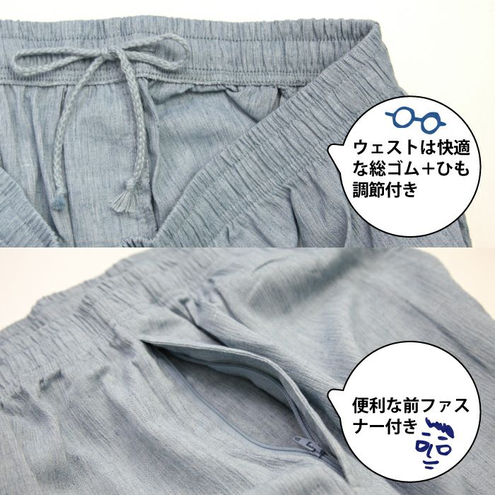 他の画像を見る Fullshopアウトレット限定品 7分丈 抑揚 麻混 リラクシング イージーパンツ お部屋でくつろげる ルームウエア メンズ ウエストゴム サラリとした履き心地 定価 ¥ 1,980 のところ 当店特別価格 ¥ 1,287 税込 カートに入れる お気に入りに登録する