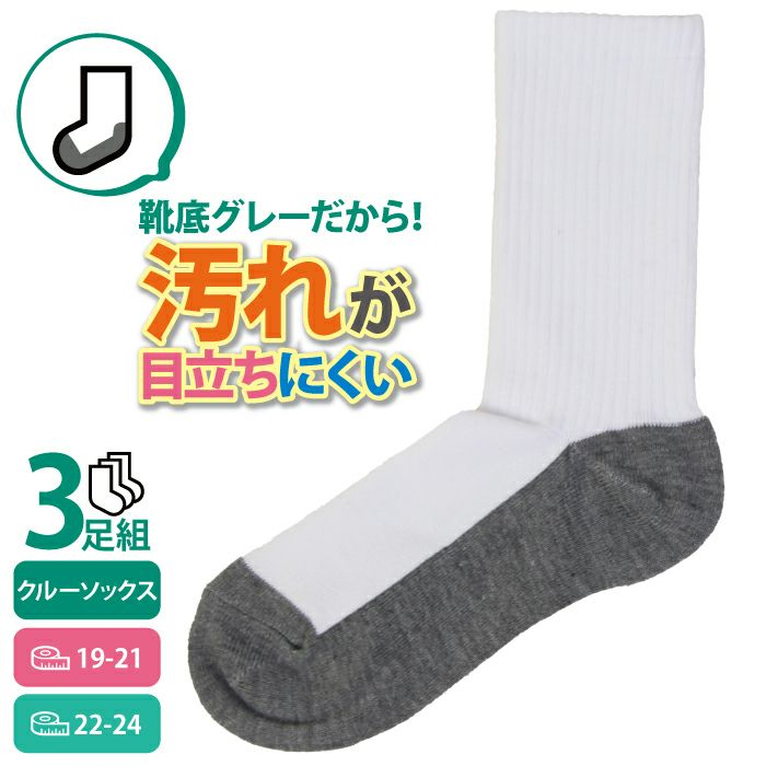 汚れが目立ちにくい ソックス 3足組 クルー丈