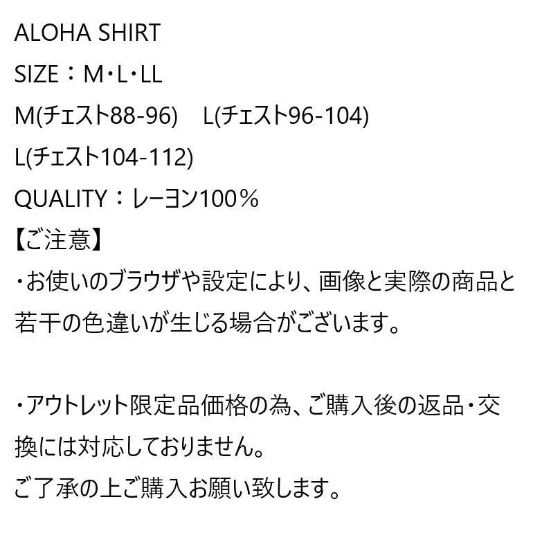 他の画像を見る Fullshopアウトレット限定品 アロハシャツ メンズ 半袖 リバースプリント ブラック ホワイト ネイビー レーヨン100% 定価 ¥ 3,300 のところ 当店特別価格 ¥ 1,650 税込 在庫切れ カートに入れる お気に入りに登録する