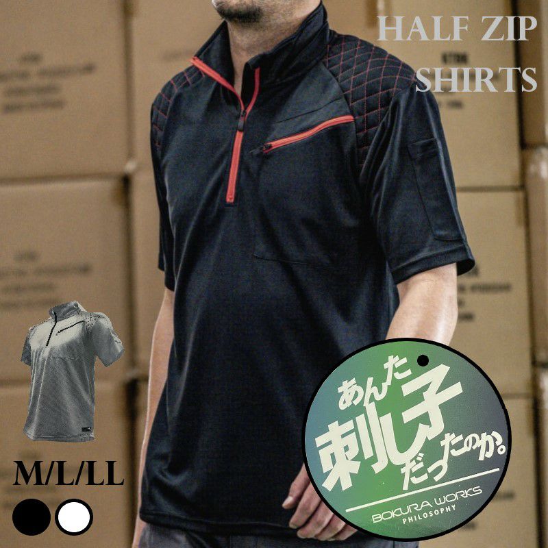 他の画像を見る 【公式サイト限定10%OFF】 半袖 ジップアップ 夏用 メンズ ハードショルダーガード 仕事着 作業着 ブラック ホワイト 倉庫 ボクラワークス 衿幅高め 日よけ対策 吸汗速乾 チンガード付き 定価 ¥ 2,200 のところ 当店特別価格 ¥ 1,980 税込 在庫切れ カートに入れる お気に入りに登録する