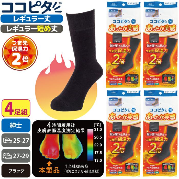 他の画像を見る メール便発送可能 【公式限定10%OFF】 ココピタ あったか実感 4足組 メンズ レギュラー丈 クルー丈 定価 ¥ 3,960 のところ 当店特別価格 ¥ 3,564 税込 カートに入れる お気に入りに登録する