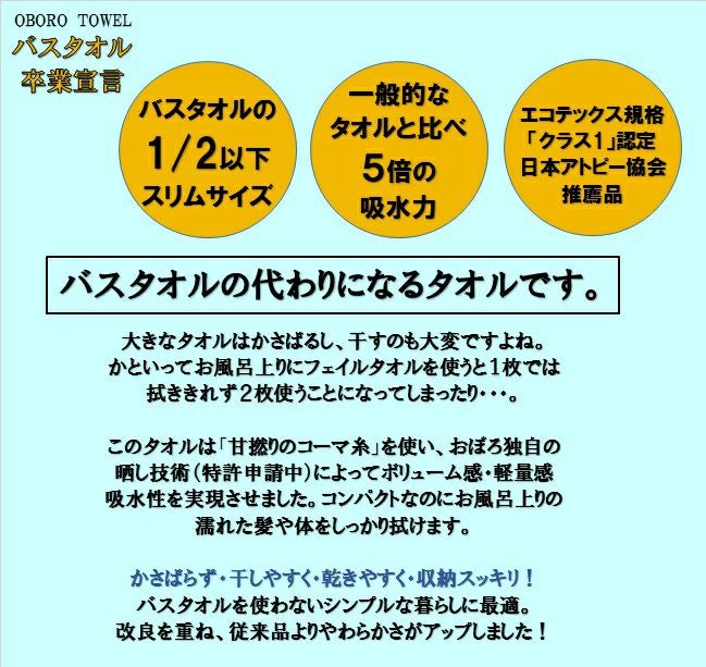 他の画像を見る 日本製綿100%バスタオル 【公式限定10%OFF】 バスタオル卒業宣言 10枚入 おぼろタオル 定価 ¥ 12,100 のところ 当店特別価格 ¥ 10,890 税込 カートに入れる お気に入りに登録する